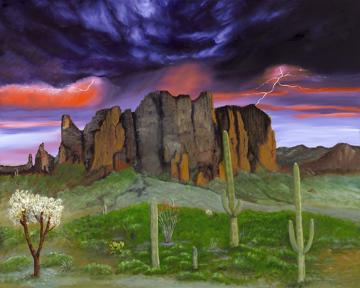 Oil on Canvas. Thunder Mountain is considered sacred ground by the Apache people of Arizona and home to their thunder god.